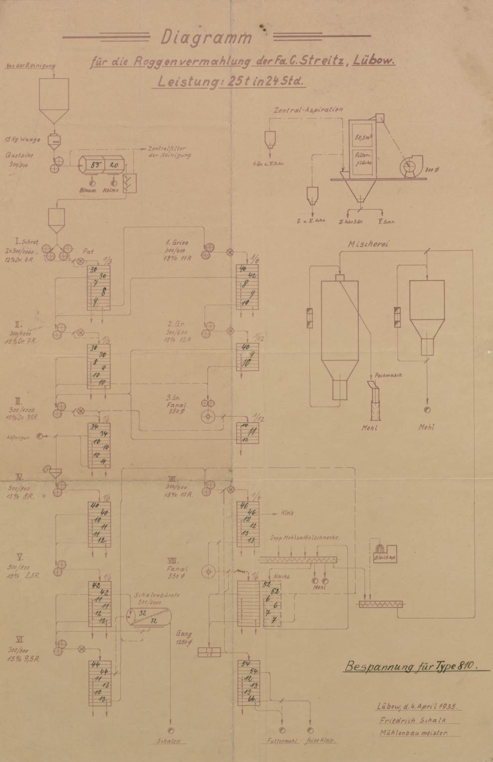 Diagramm der Roggenvermahlung. - Die kompletten Nachkommentafeln von Daniel Streitz und von Hans Kahrow kommen demnächst.